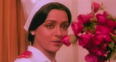 Indu is quite shocked by her six brothers-in-law, and no wonder considering one of them is Shakti Kapoor and they move about in next to nothing but some brightly colourful underwear. In the end however it´s them who get the bigger shock, when she decides to „civilize“ them.... Hema Malini is someone I am usually a bit wary about on screen, thought it´s true I´ve not seen that many of her films as yet, and I liked her as feisty Indu, except her dialogue delivery is not the best and her voice modulation neither. She is a good match for Amitabh (who is of course great) and Indu is really that one phenomenon which keeps the basic plot tight and entertaining. Her quest to make her brothers-in-law normal people who dress and wash and don´t eat with their hands was hilarious. However as the movie goes on the focus shifts to the six brothers and their little romances as well as some rather unnecessary masala plot involving an Amitabh´s duplicate and money plotting, Indu makes a quiet exit and so does most of the humour.